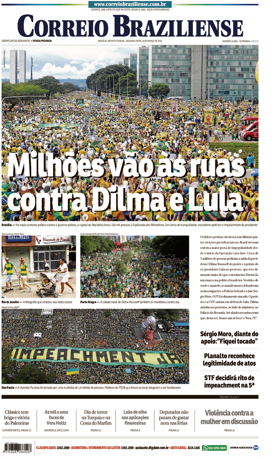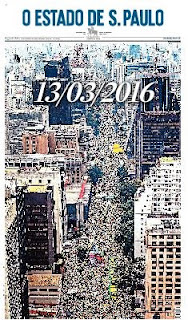 O novo fato de 1500 a 2016! O despertar do caminhar do processo da cidadania política ao novo alvorecer da inteligência da vida. O mais espetacular é a valorização do símbolo brasileiro, a sua bandeira e o hino nacional. Cantado por todos, dentro e fora do país. É uma identificação de amor ao bom-senso, de agregação de todo potencial da contribuição da historia, por todos nós brasileiros. Há de se indagar, se a movimentação espontânea da nação brasileira é o prover do potencial coletivo. A nação é, e sempre será, mais importante que as instituições. A nação é o caminho correto da formação do estado e do poder republicano. Como diz a frase de alguém “é o amor a vida e vivifica-la”. O Brasil vivificou em 13 de março de 2016 o amor pela vida, pela nação, pelo país, pelas pessoas, pela família brasileira e acima de tudo, pela civilização humana.