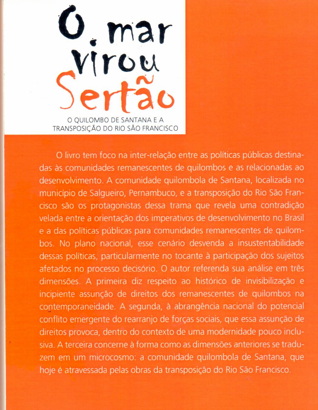 | Esse livro é uma pesquisa de mestrado feita por Daniel Brasil pela UnB, sobre a realidade dos ribeirinhos e quilombolas na transposição do rio São Francisco.